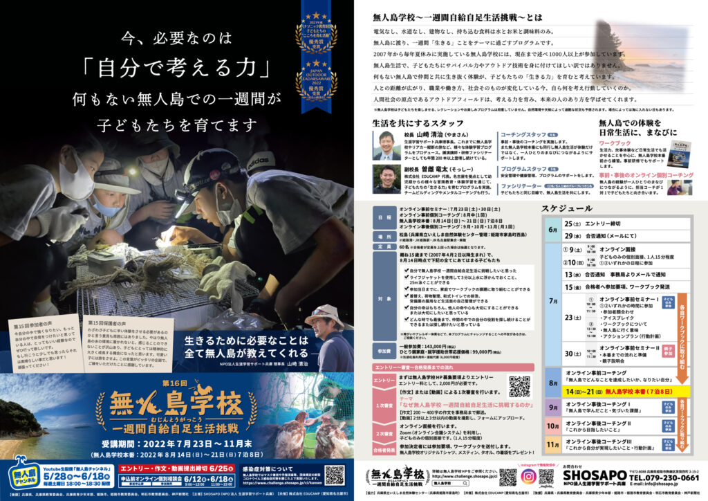 16回 2022年度 無人島学校 一週間自給自足生活挑戦